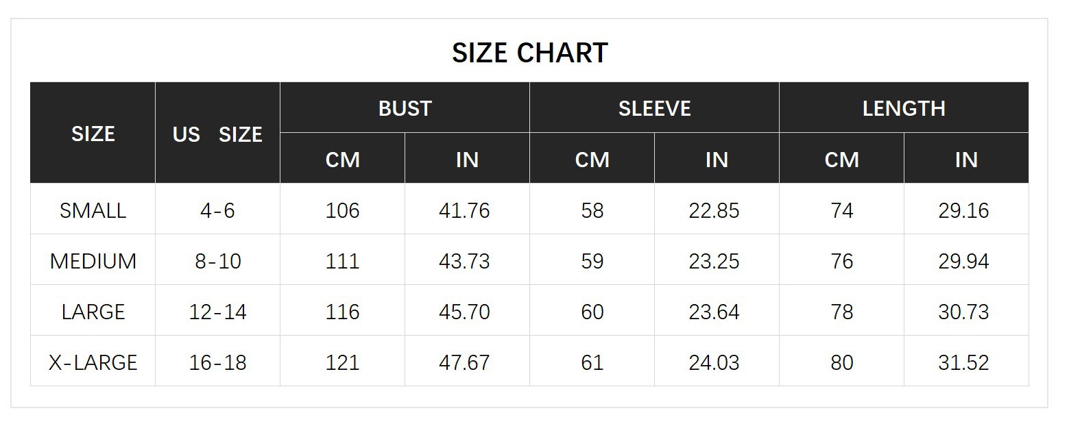 2. Please check the size chart carefully before you buy the item, if you don't know how to choose size, please contact our customer service.