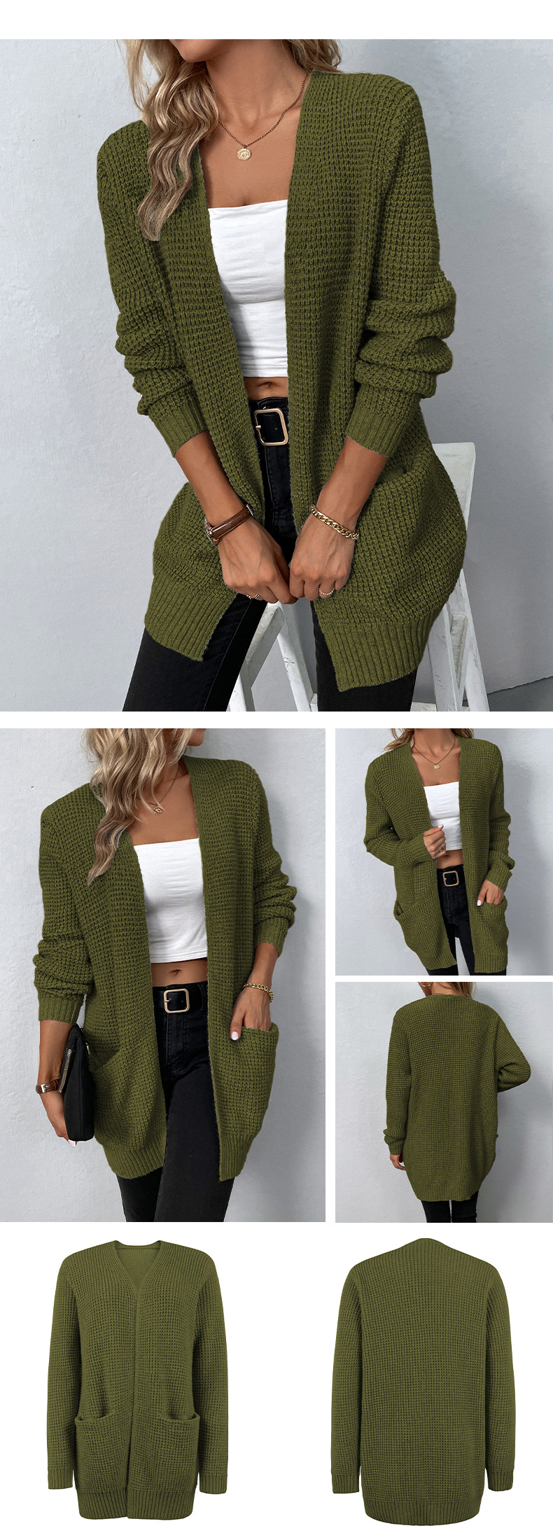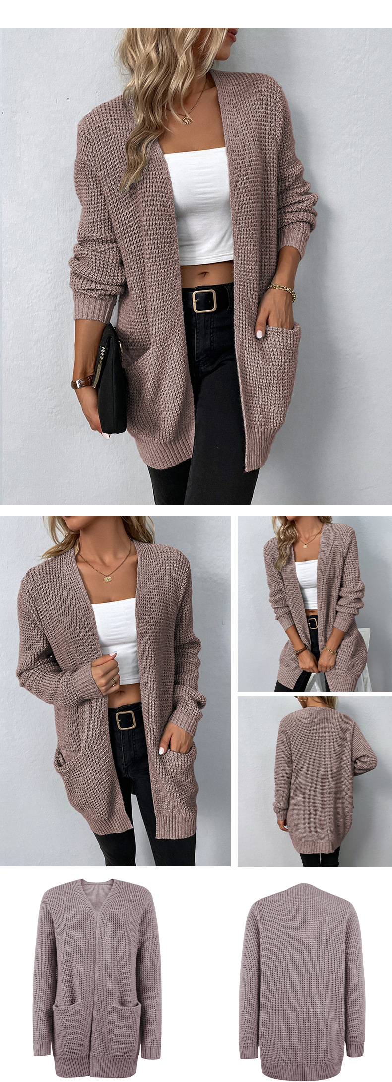 Women's Solid Color Pocket Sweater Women's Cardigan Coat